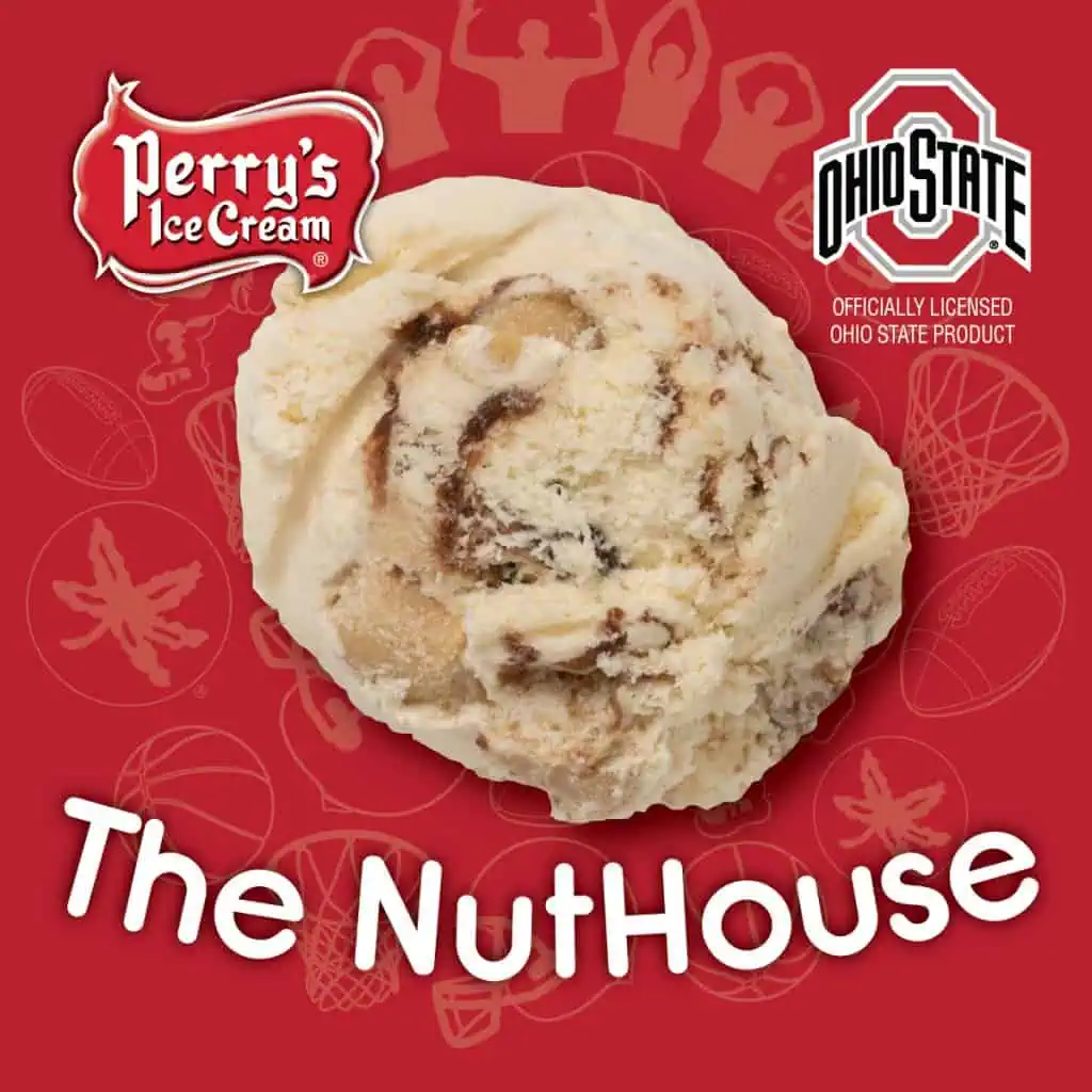 - The NutHouse – An exciting collaboration with Ohio State University Athletics, this decadent flavor features creamy sea salt caramel ice cream, delicious brownie batter swirls, and chunks of peanut butter cookie dough for a rich and indulgent treat. This fan favorite is also available in retail 1.5 QTS.