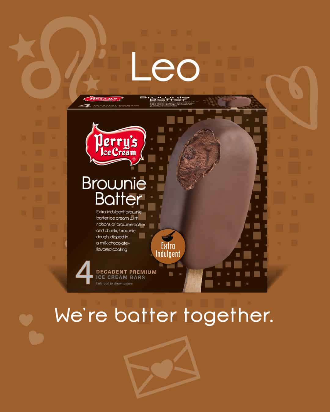 Extra creamy brownie batter ice cream swirled with ribbons of brownie batter and chunky brownie dough, enrobed in a rich milk chocolate–flavored coating is bold, decadent and impossible to ignore – just like your favorite Leo.