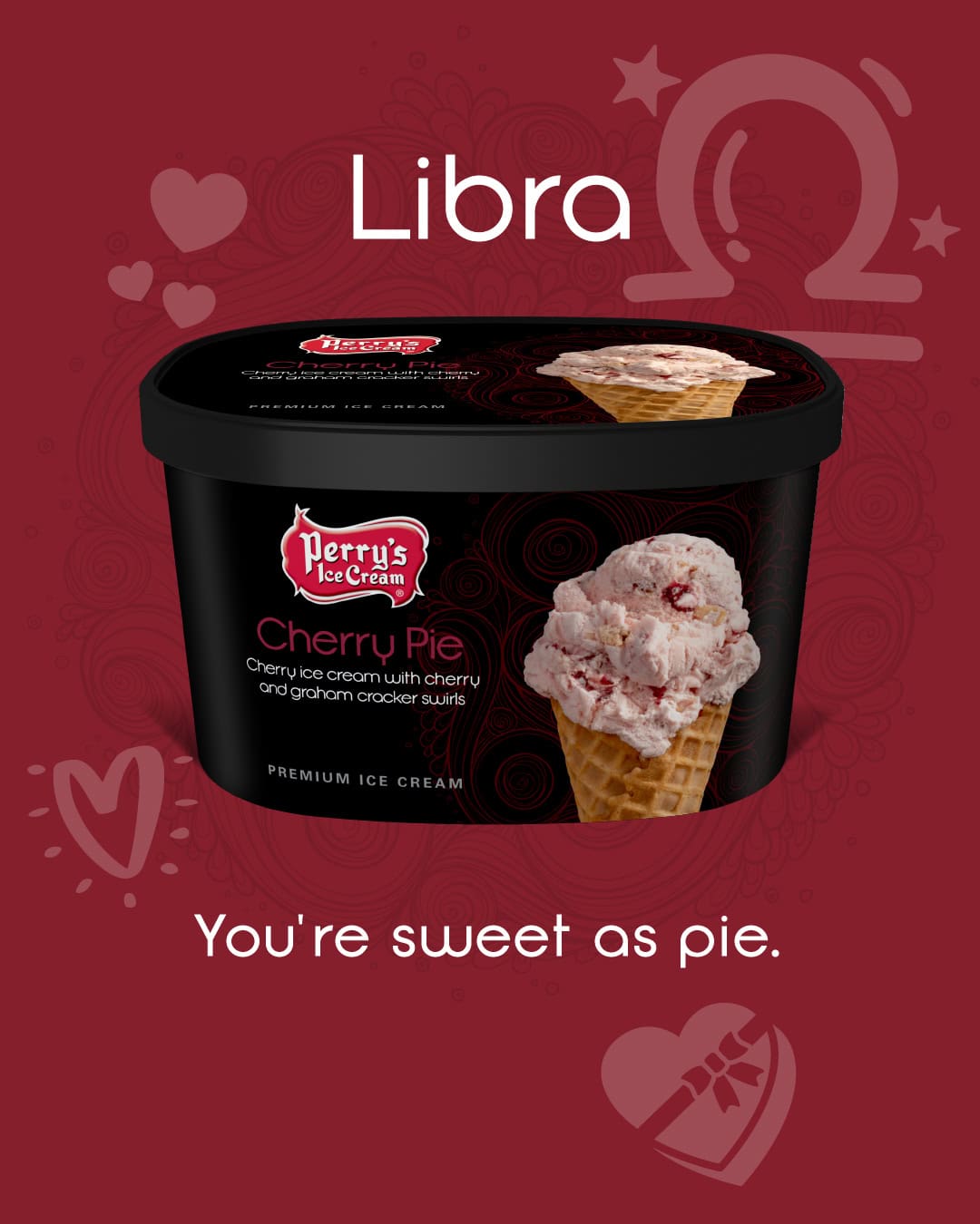 Cherry ice cream with cherry and graham cracker swirls feels classic, charming, and delightfully indulgent—just like Libra.
