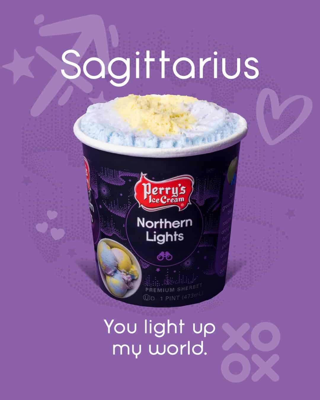 This vibrant swirl of sour green apple, blue raspberry, and grape sherbets perfectly reflect Sagittarius’ colorful, adventurous spirit.