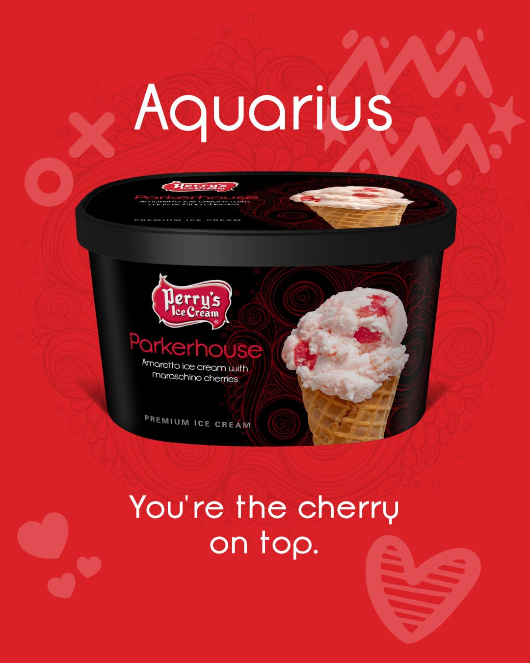 Amaretto ice cream with maraschino cherries is classic with a little bit of extra—perfectly Aquarius.