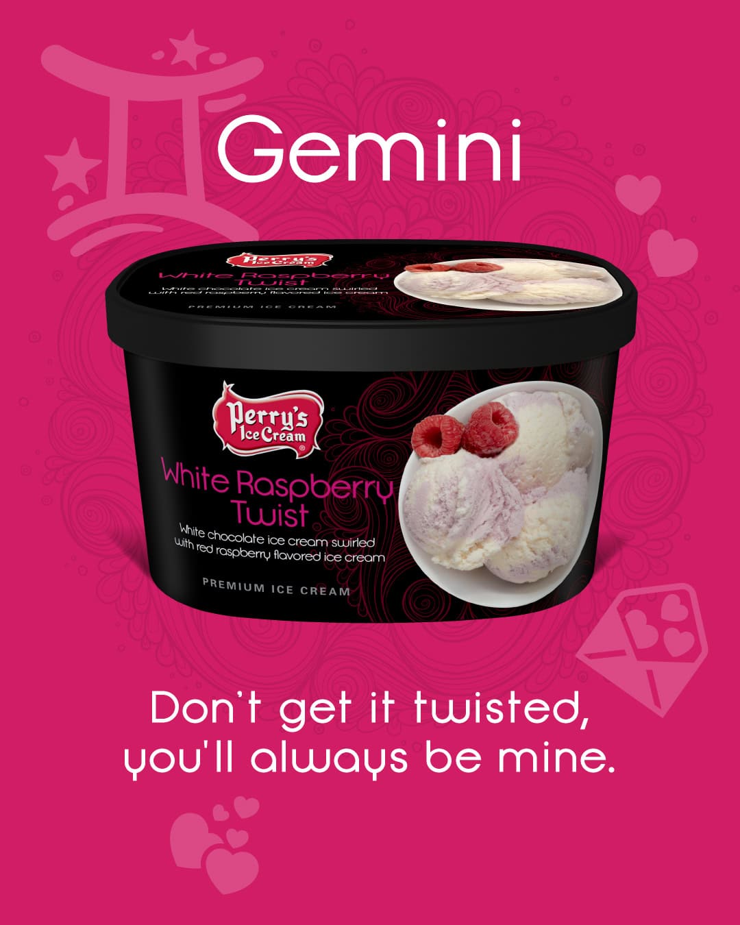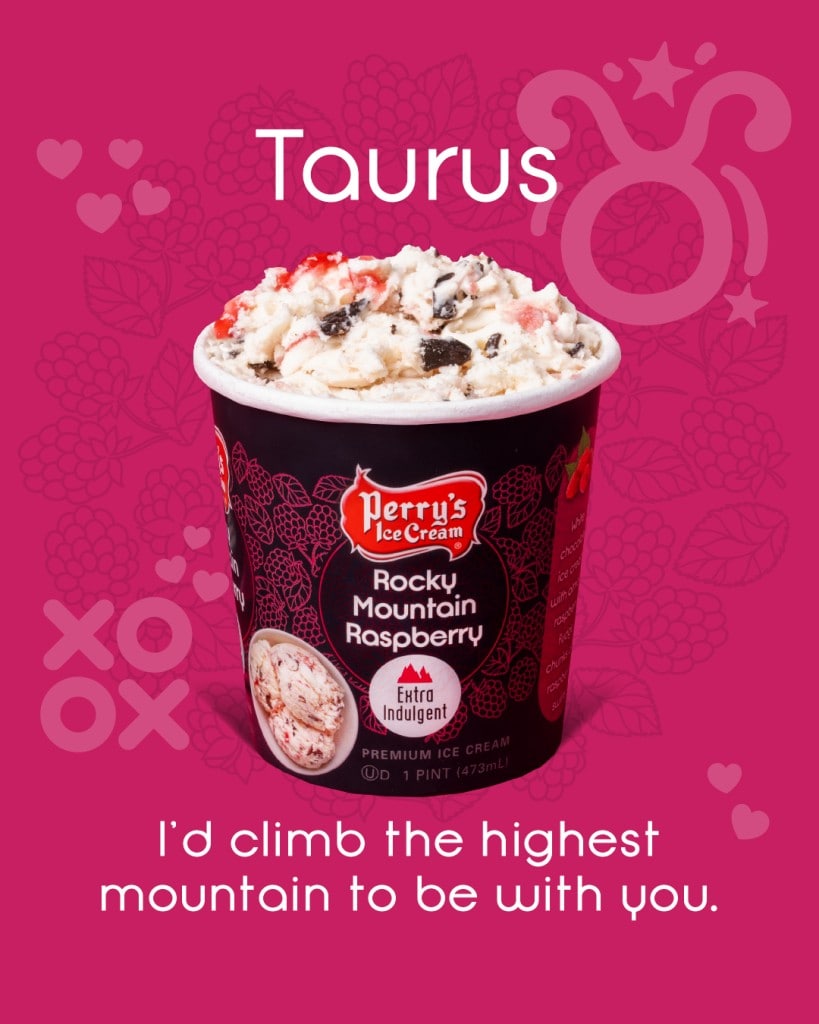 Rich white chocolate ice cream mixed with almond raspberry fudge chunks and vibrant raspberry swirls make every moment exceptionally indulgent – exactly the way a Taurus likes it.