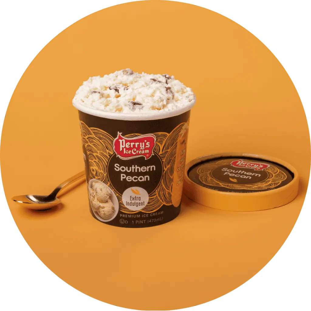 | INGREDIENTS: CREAM, MILK, LIQUID SUGAR, SKIM MILK, BUTTERMILK, ROASTED PECANS [PECANS, COTTONSEED OIL, BUTTER (CREAM, SALT), SALT], CORN SYRUP, NATURAL FLAVOR, MONO- AND DIGLYCERIDES, CELLULOSE GUM, GUAR GUM, DEXTROSE, ANNATTO (COLOR), EGG YOLKS. | ||||||