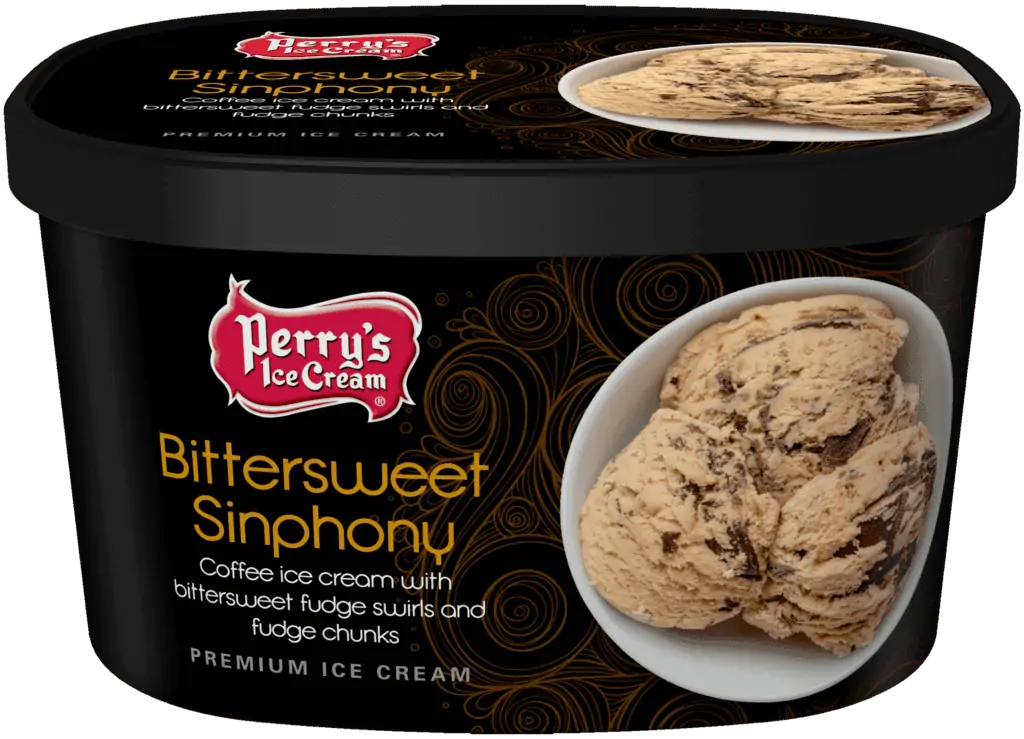 Of all our coffee flavors, Bittersweet Sinphony has been in our flavor lineup the longest, and is coffee ice cream with bittersweet fudge swirls and fudge chunks! This classic treat has been around for years, and is loved by so many of our loyal Perry’s fans. Available both in our family size retail packages and at scoop shops, this flavor is sure to please!